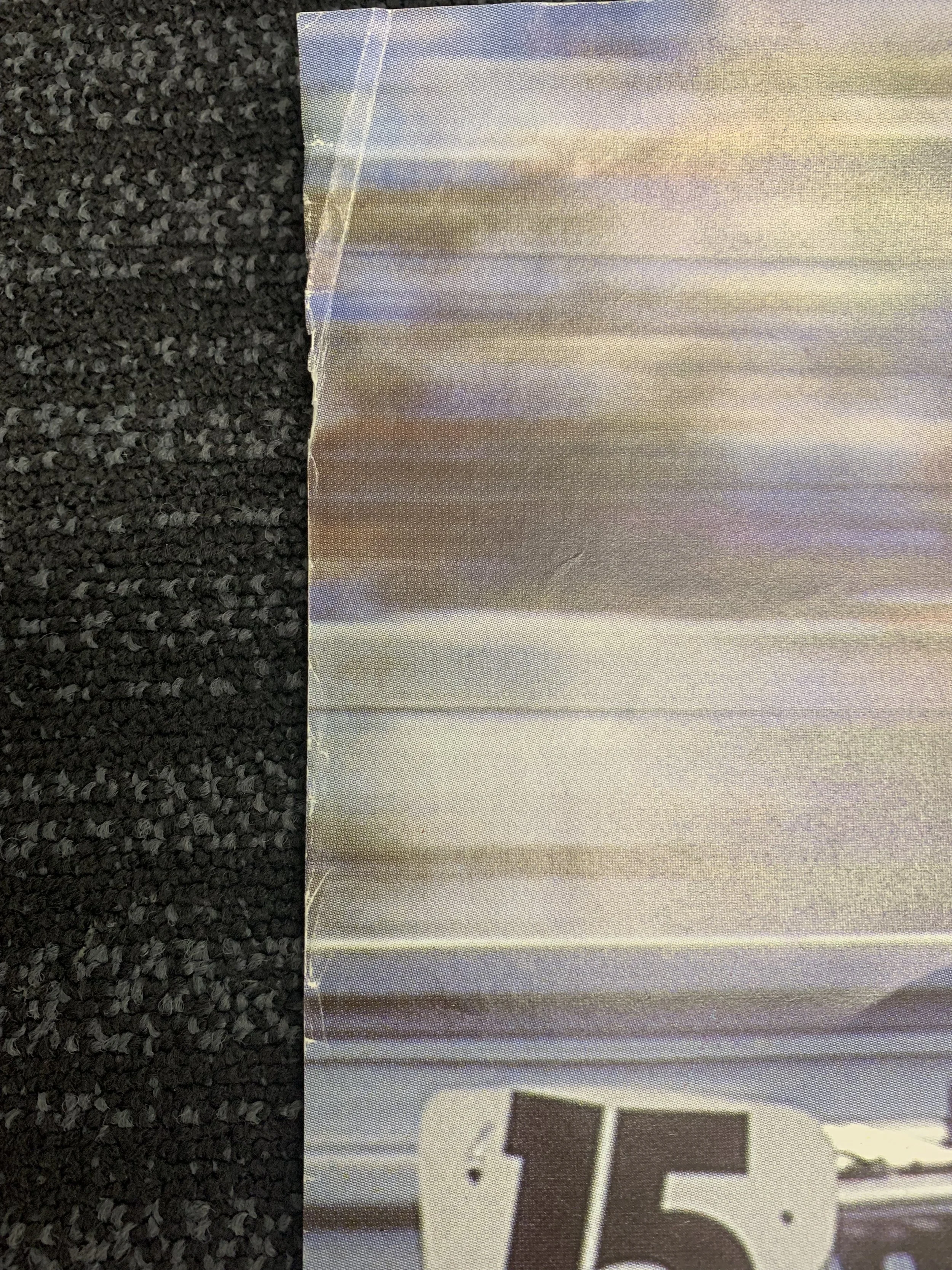 Condition Comments: Some visible general creases. Fraying and crease to the top left corner and middle edge. Minor fraying and print loss to the right edge. Fraying with a small tear to the bottom edge with a crease with a small amount of print loss.